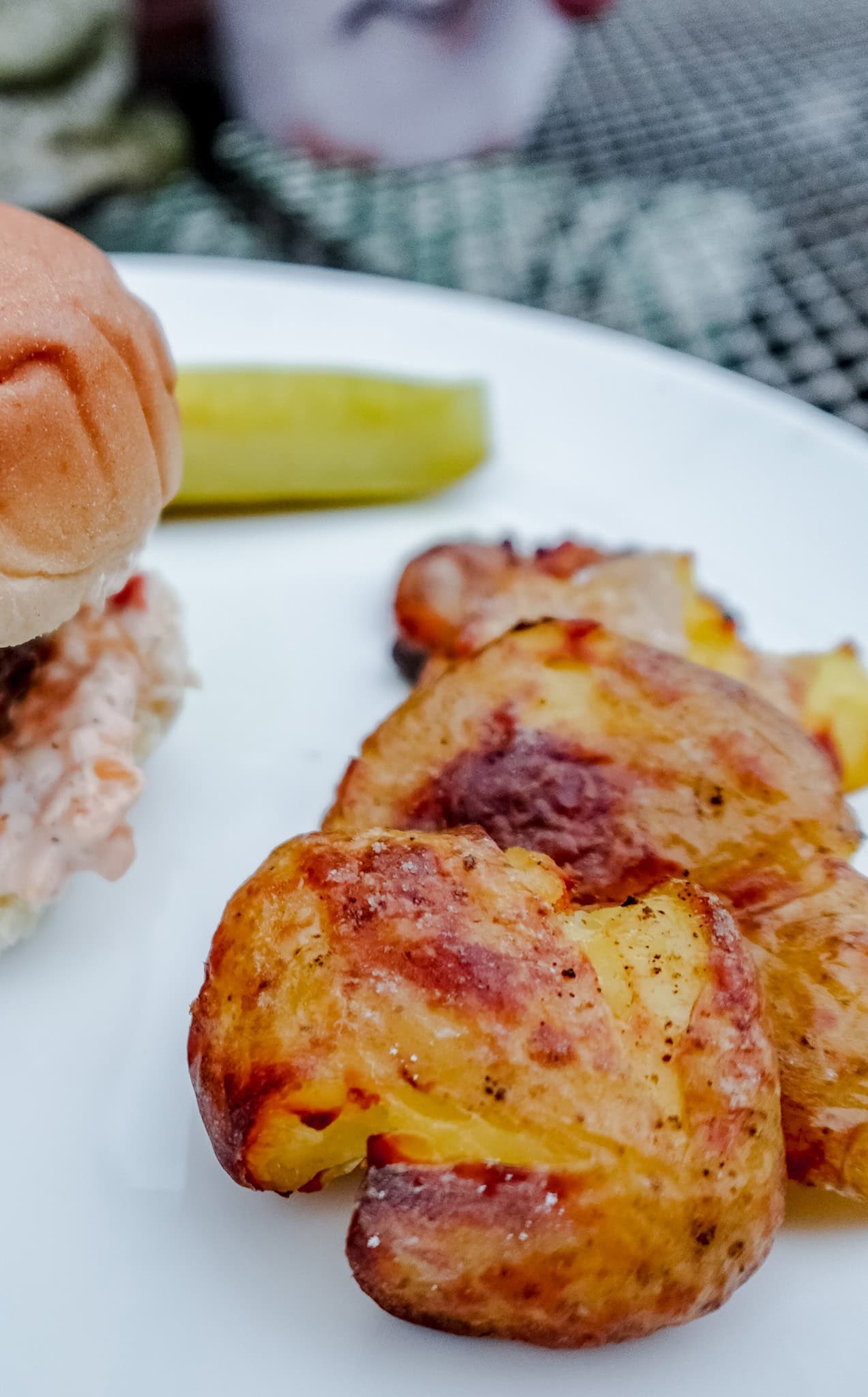 - Make it interactive. Let your kids or guests smash their own potatoes on the tray. It’s fun and weirdly satisfying.